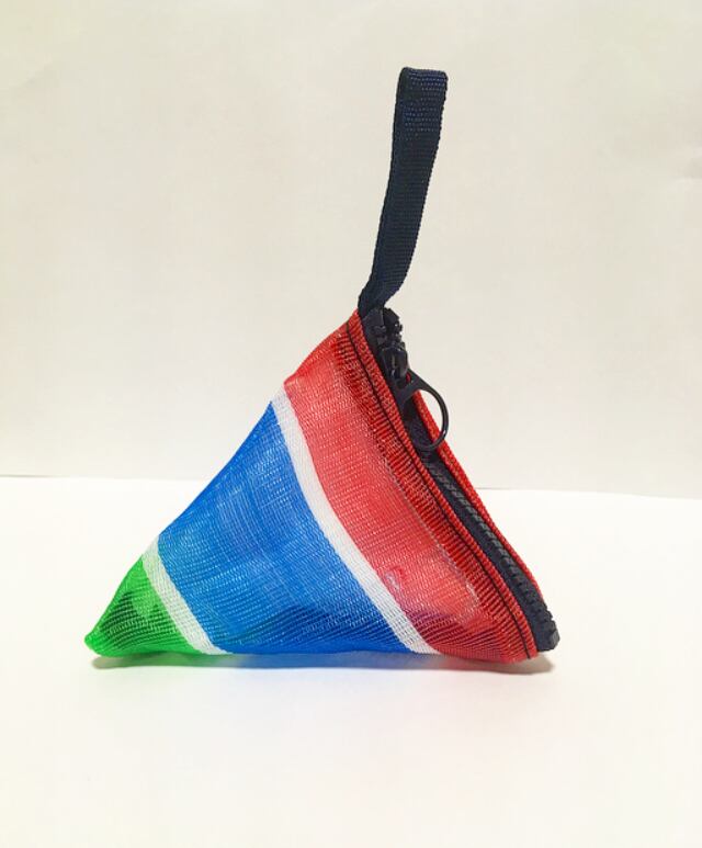 お馴染みの漁師ナイロントートバッグの素材の三角形巾着。